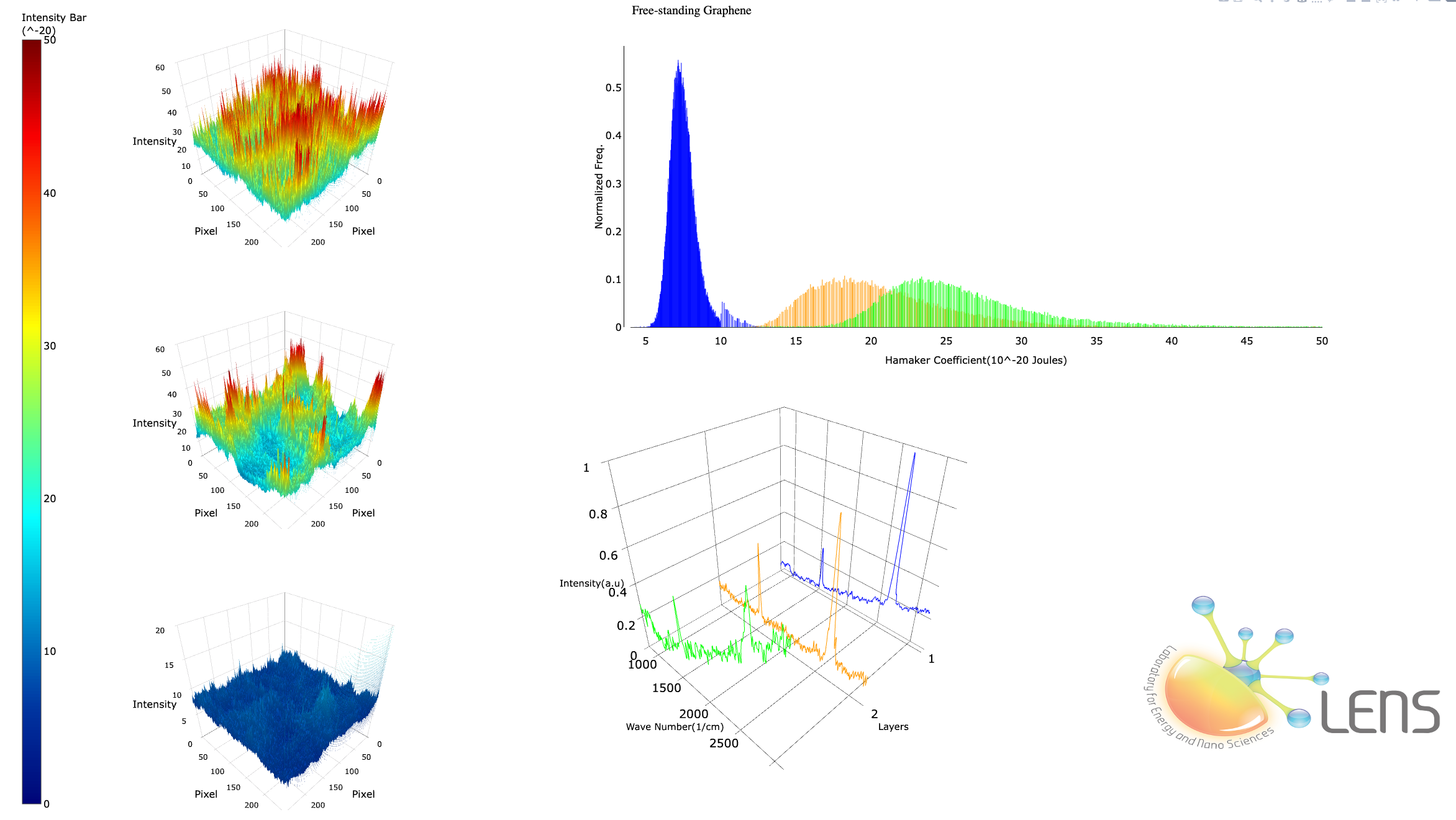 The following three visualizations are graphe which I grew by using CVD. From the left to the right are Free-standing graphene, graphene on SiO2, and graphene on copper. Each visualization is consisted of Raman and AFM. Click for interactive visualization(It might take 10 seconds to open).